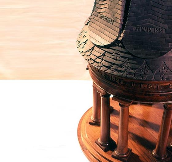 Le grand chef-d’œuvre des compagnons passants couvreurs du Devoir d’Angers a été entrepris en 1913 par le compagnon Alfred Bonvous père (Angevin la Clef des Cœurs) et son fils (Angevin Cœur de France). Ce dernier est mort à Verdun durant la Grande Guerre. Le père a continué seul la confection de cette œuvre monumentale, associant de multiples difficultés d’exécution, et l’a achevée en 1922, au terme de 3700 heures de travail. La couverture comporte près de 8000 ardoises. Certaines sont découpées et forment des sentences, des blasons, et le nom du fils mort pour la France.