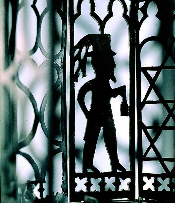 La flèche en ardoise découpée est un chef-d’œuvre de patience et d’habileté, réalisé pour le seul plaisir du compagnon couvreur Pierre-Germain Philippe, Rennois la Promptitude, au début du XXe siècle. Les petits panneaux d’ardoise refendue sont percés, découpés comme de la dentelle, finis à la lime puis assemblés.