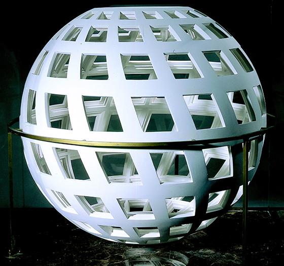 Cette sphère en staff constitue le chef-d’œuvre de réception de La Sincérité de Valençay, compagnon passant plâtrier du Devoir (1990). Cumulant des difficultés d’exécution, ce travail donne l’illusion de la rotation et s’apparente à une œuvre d’art décoratif.