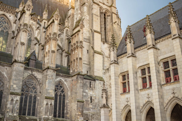 Livre ouvert de l’art gothique, la cathédrale Saint-Gatien en arbore tous les styles. Bâtie entre le XIIIe et le XVIe siècle sur les vestiges de la cité gallo-romaine, elle présente une façade flamboyante très ouvragée, joliment éclairée la nuit. Outre ses remarquables verrières, elle renferme le tombeau des enfants d’Anne de Bretagne et de Charles VIII, gracieusement sculpté vers 1500.