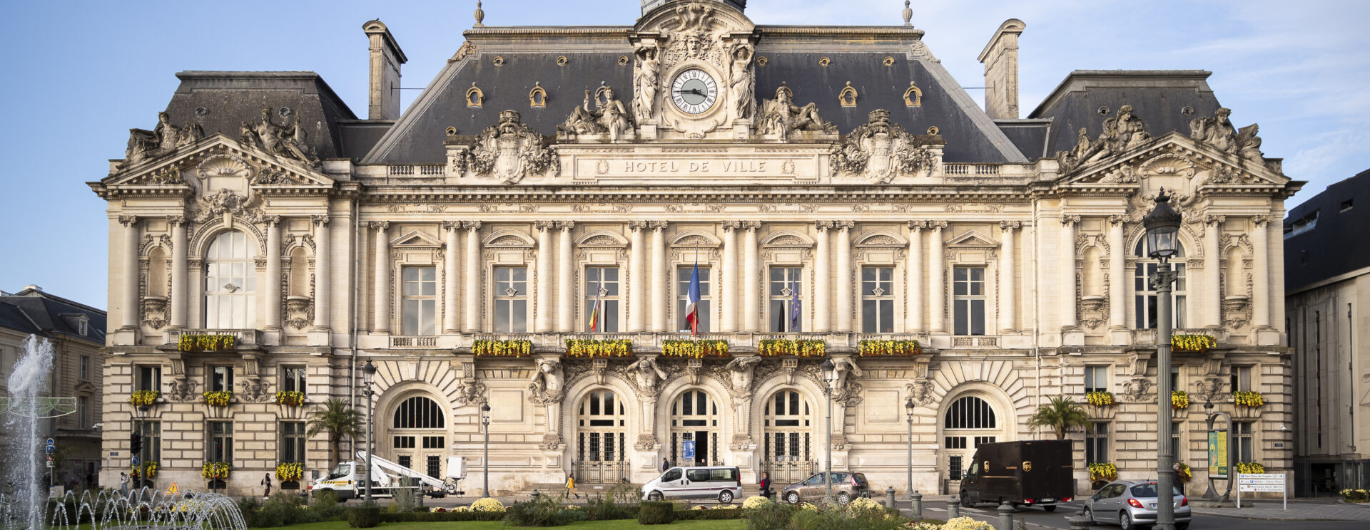Construit de 1896 à 1904 sur les plans de l’architecte tourangeau Victor Laloux afin de remplacer l’ancien hôtel de ville qui se trouvait place Anatole France, l’hôtel de ville constitue l’un des plus imposants édifices de Tours. Conçu à l’époque comme un véritable palais municipal, ses volumes et ses décors en font un manifeste à la gloire des valeurs de la IIIe République et de la Touraine.