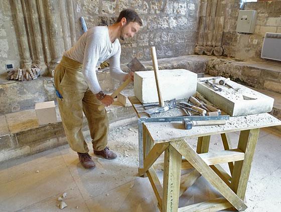 XIIIe siècle : un vitrail de la cathédrale de Chartres et un autre de celle de Bourges représentent des tailleurs de pierre au travail. Le bandeau à décor de feuilles ou de fleurs que certains portent autour de la tête pourrait être l’une des premières représentations des « couleurs fleuries » (rubans) des compagnons passants tailleurs de pierre.